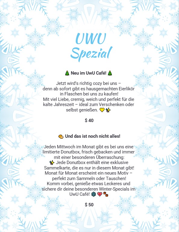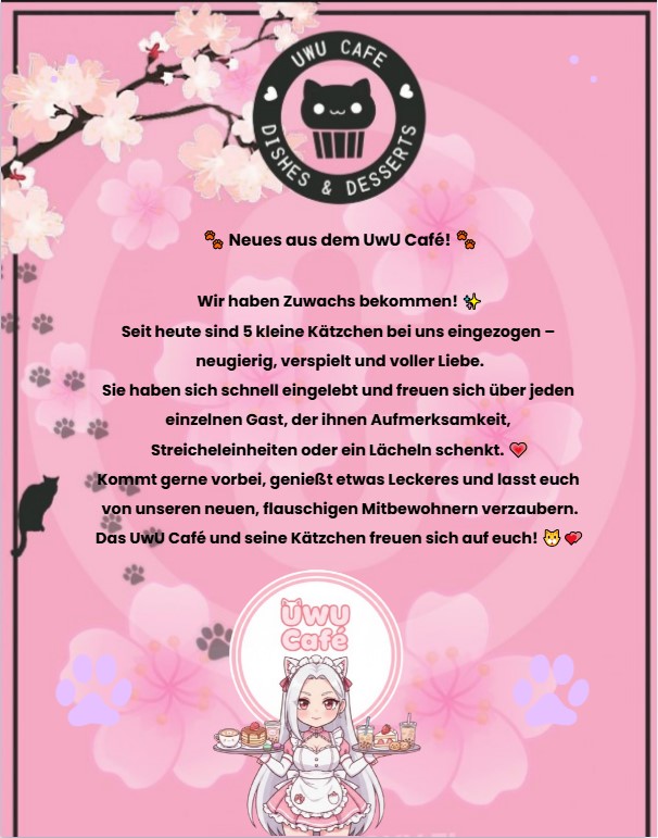 Ob Geburtstagstorte mit extra Glitzer, eine romantische Hochzeitstafel, ein speziellen Boba oder einfach ein Kuchen, der "OMG" schreit – das UwU Café macht's möglich. 🍰✨
